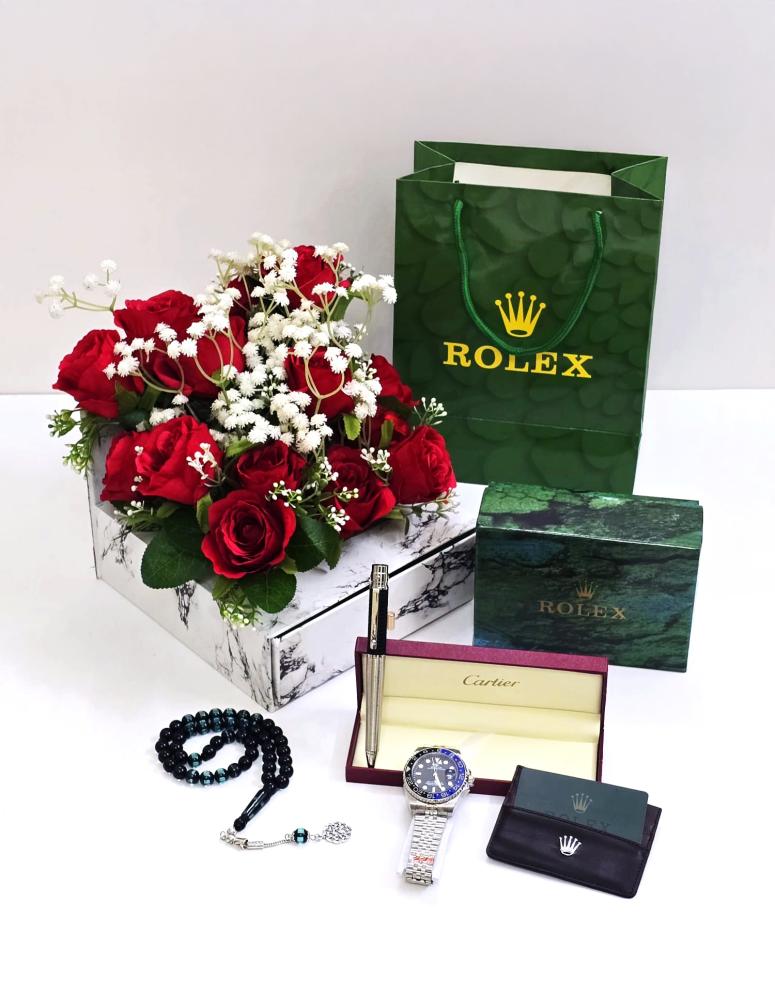 هدايا رجالية فاخرة – ساعة رولكس + قلم كارتير + بوك بطايق + سبحة