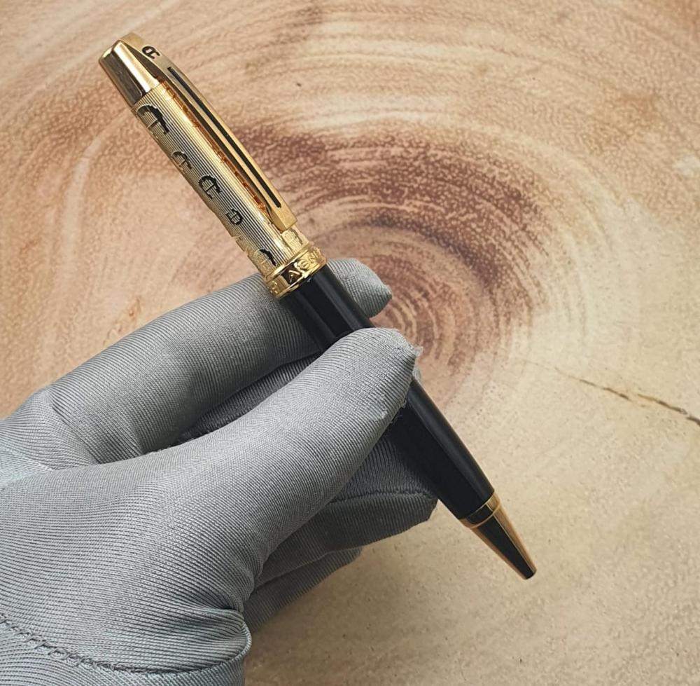 قلم اقنر اسود و ذهبي مزخرف بشعار اجنر