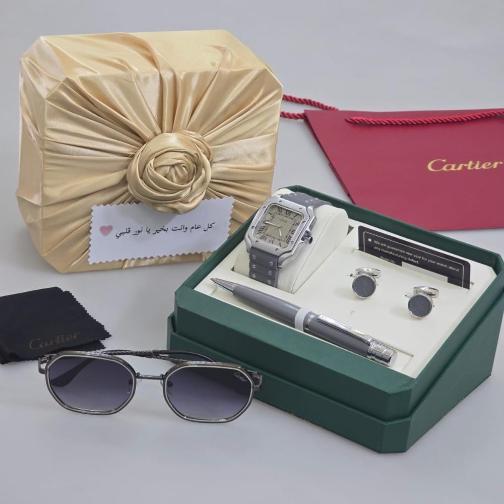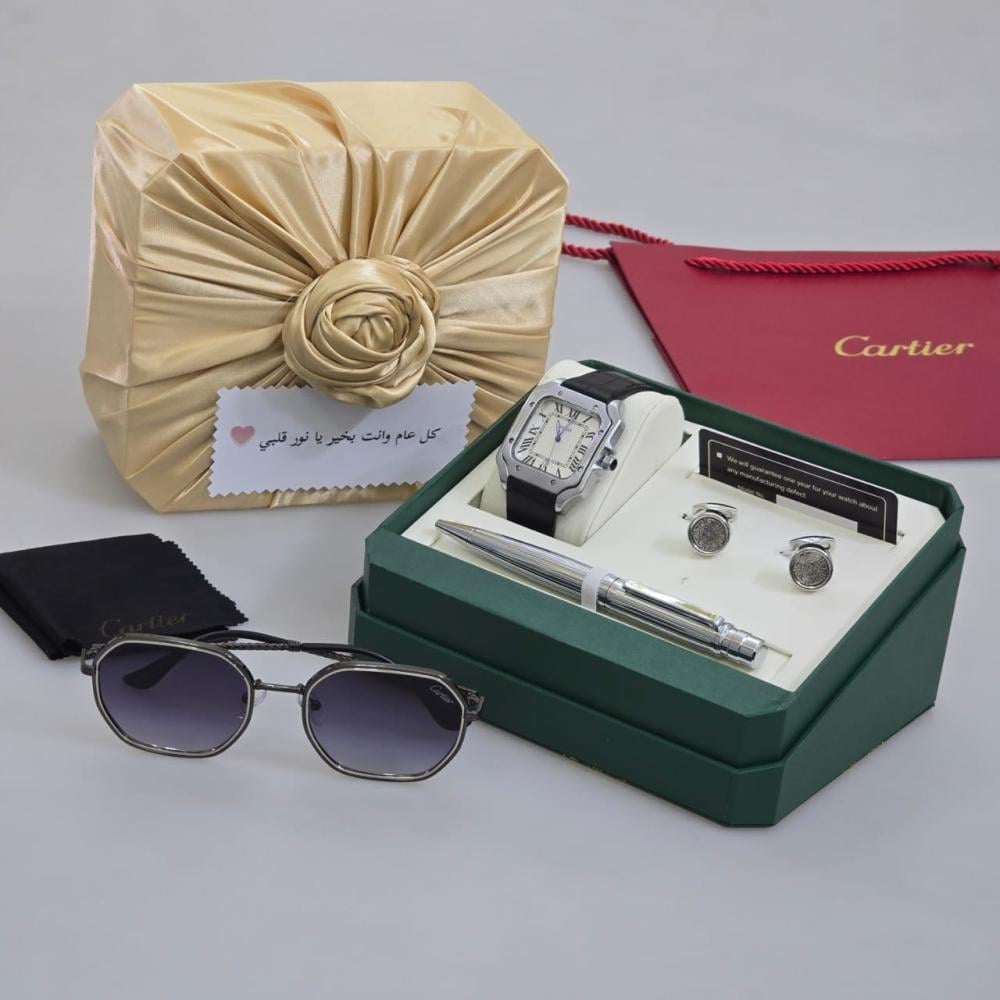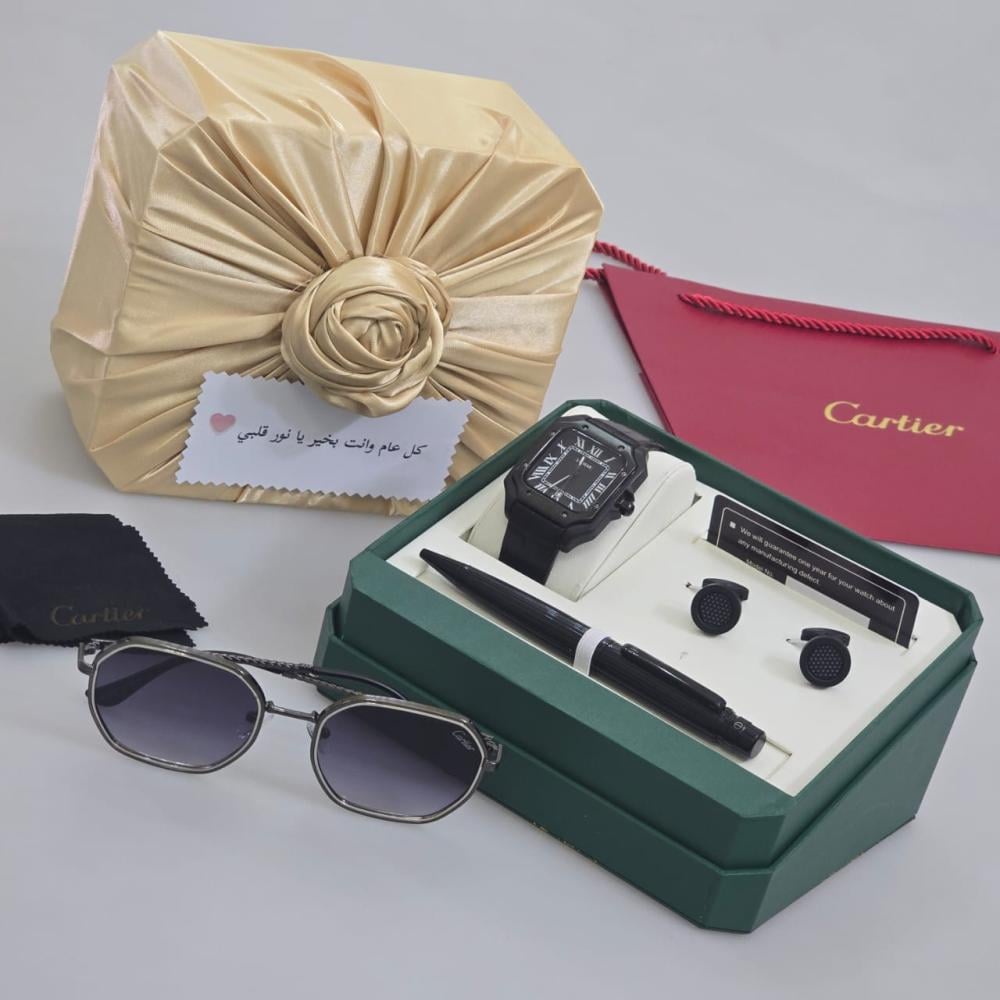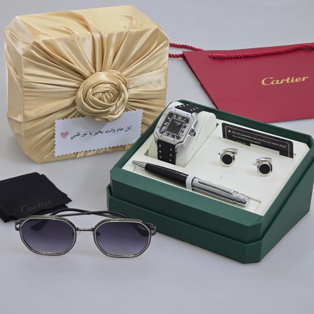 طقم كارتير الفاخر - ساعة، نظارة، قلم، وكبك